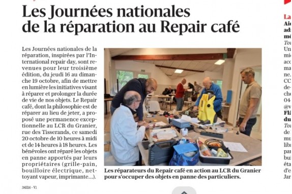 C'est dans ce cadre que le Repair Café Meylan sera ouvert exceptionnellement le samedi 18 octobre 2025